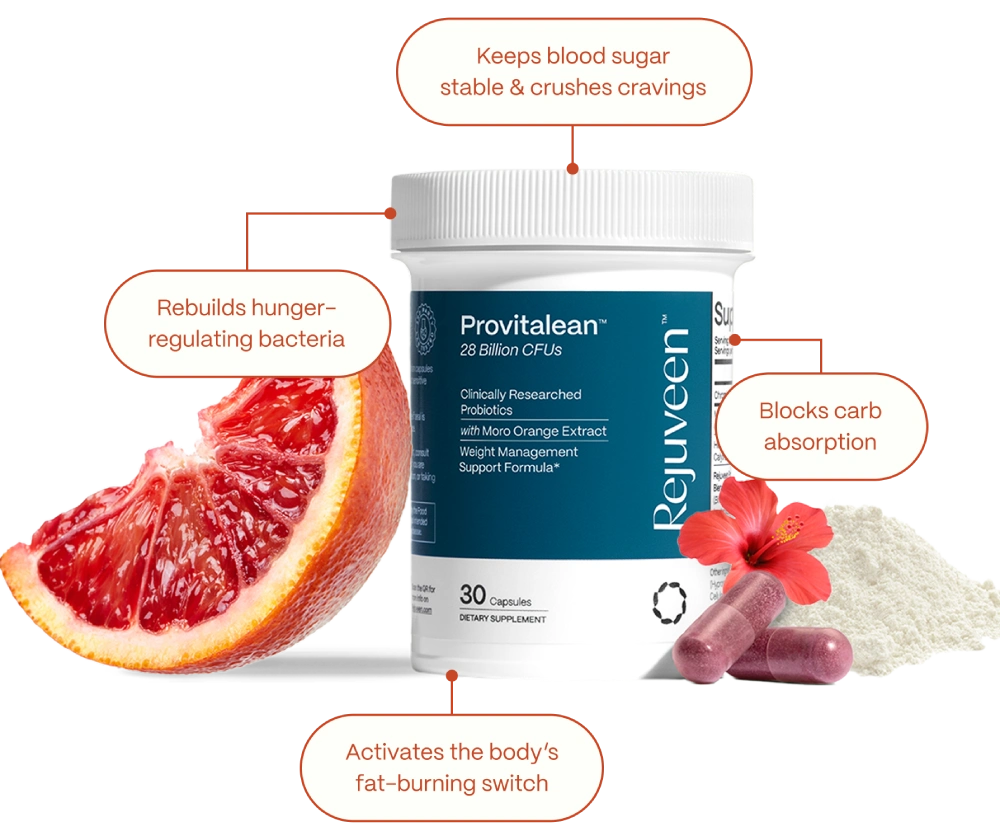 After Ozempic/ GLP-1s: Provitalean keeps your Akkermansia levels strong, so your appetite stays quiet and the 22 lbs you fought to lose don’t come storming back.