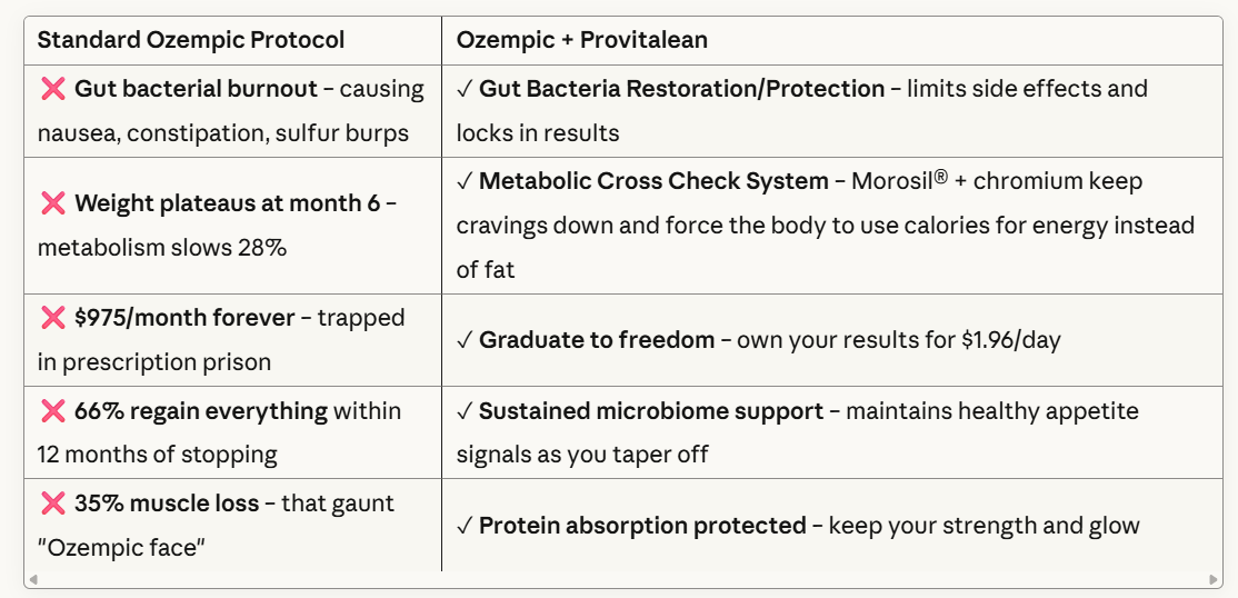 With Ozempic/ GLP-1s: Provitalean shields your gut bacteria from “Gut Bacterial Burnout,” so you lose weight faster, avoid nausea and constipation, and keep cravings silent while the drug does its work.