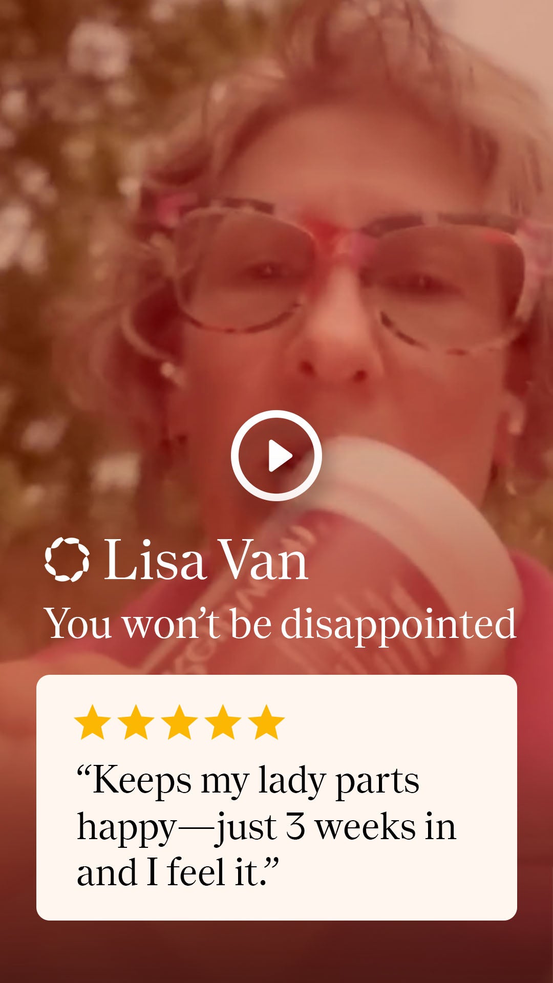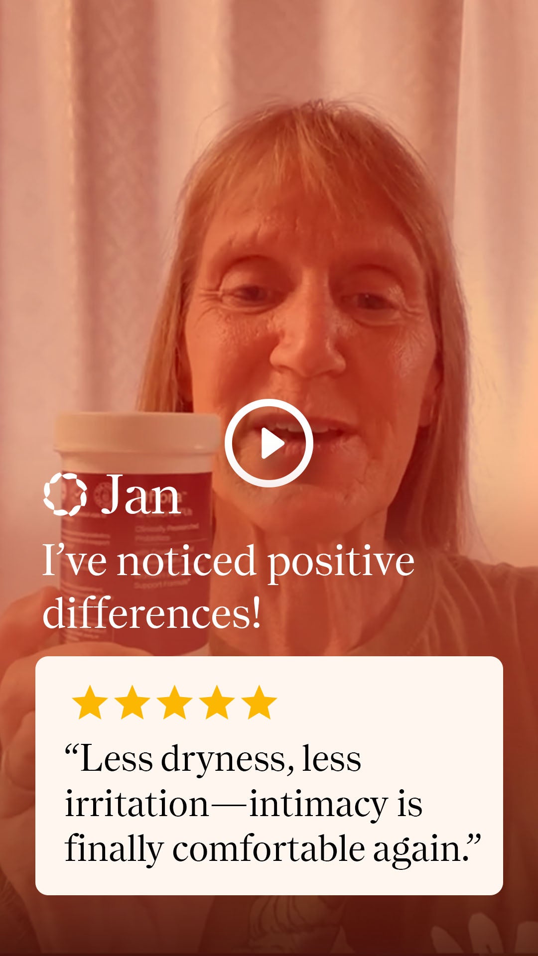"In the last couple weeks, I’ve noticed some results I hadn’t really expected. ‘Down there’ isn’t as dry, I feel less irritation, and intimacy is noticeably more comfortable. I don’t know if it’s related, but my fingernails are smoother with fewer ridges. Again, it’s been great using Uflora."