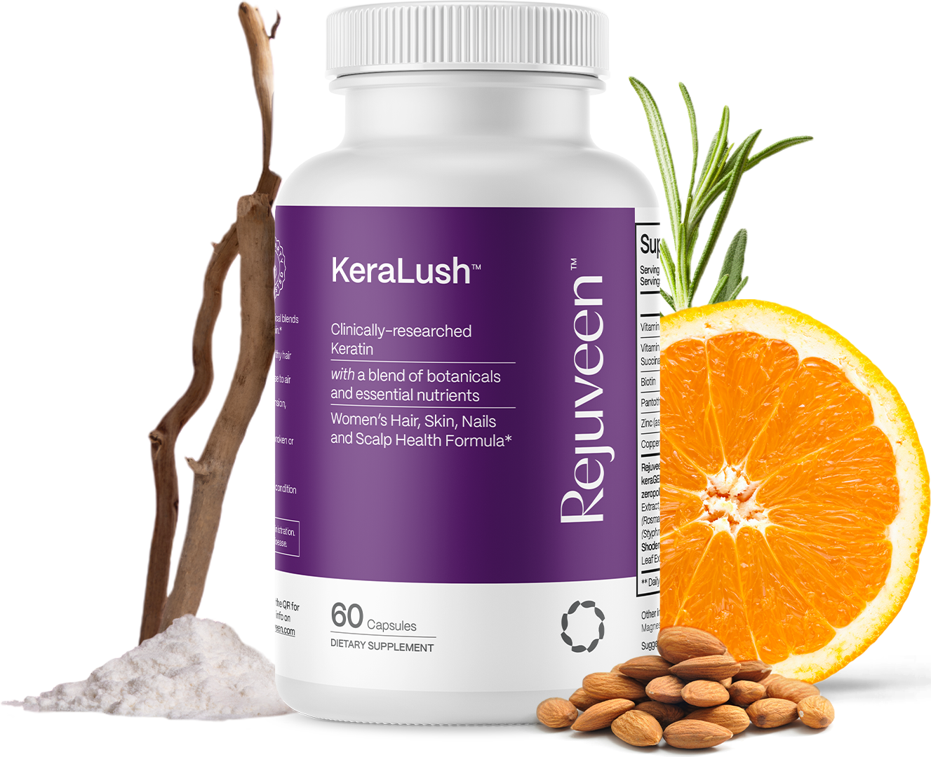 KeraLush™ contains a clinically-studied dose of keraGEN-IV® – a combination of keratin peptides, Shoden® ashwagandha, and zeropollution® botanicals – which has been studied to naturally support healthy hair growth and reduce shedding.