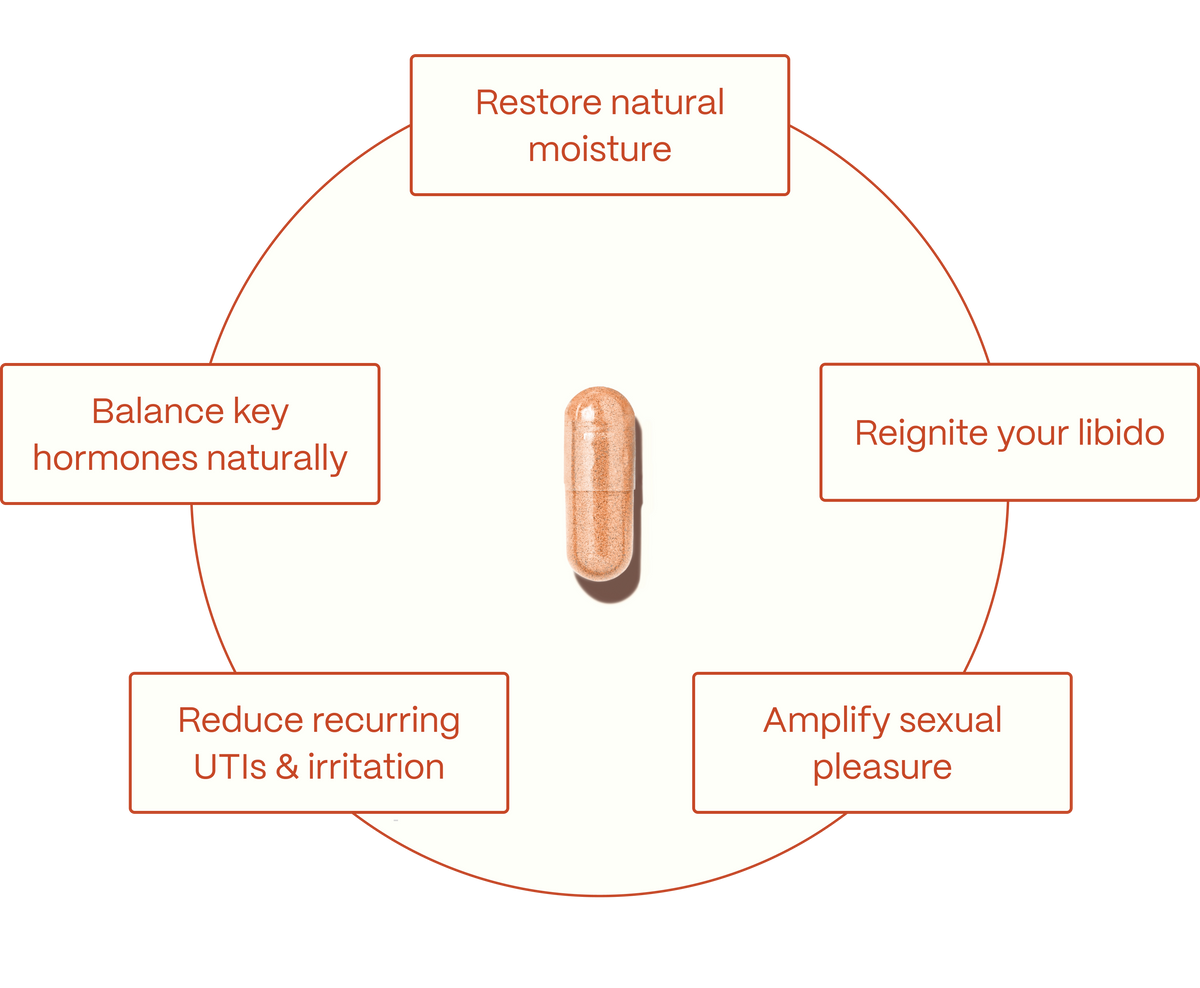 Uflora works by helping the body fight back against the three biological causes of FFD — hormonal imbalance, microbiome disruption, and cortisol overload — without synthetic hormones, messy lubricants, so you can feel like yourself again.